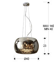 Pendant made of metal, chrome finish. Shimmered glass shade and crystal drops inside, Murano style.